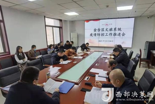 西部決策網(wǎng)訊(記者帥華鋒)12月24日,寶雞市金臺(tái)區(qū)文旅局召開(kāi)全區(qū)文旅系統(tǒng)疫情防控工作推進(jìn)會(huì)。會(huì)議傳達(dá)學(xué)習(xí)了省、市、區(qū)關(guān)于疫情防控工作相關(guān)會(huì)議精神,全面分析了當(dāng)前疫情防控工作面臨的嚴(yán)峻形勢(shì),并就全區(qū)文旅領(lǐng)域疫情防控工作進(jìn)行了具體的安排部署。
