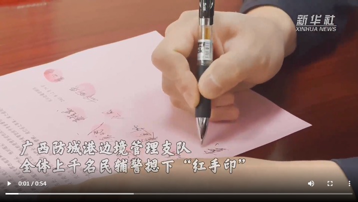 廣西防城港邊境管理支隊(duì)上千名民輔警集體遞交“戰(zhàn)疫請(qǐng)戰(zhàn)書(shū)”,主動(dòng)要求向抗疫最前線(xiàn)靠攏。他們繼續(xù)選擇逆行,奔赴國(guó)門(mén)口岸、邊境卡口、村寨社區(qū),始終奮戰(zhàn)在最前線(xiàn),維護(hù)檢測(cè)現(xiàn)場(chǎng)秩序,保障救援力量通行,強(qiáng)化邊境巡邏防控。“請(qǐng)戰(zhàn)書(shū)”上的一個(gè)個(gè)“紅手印”,見(jiàn)證忠誠(chéng)。