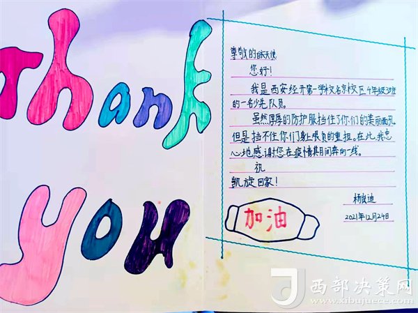三九嚴(yán)冬,雪花紛飛,寒風(fēng)刺骨。12月24日,一大早,我和隊(duì)員們?cè)缭绲街付ǖ攸c(diǎn)集合,等待分配任務(wù)??吹阶o(hù)理姐妹們個(gè)個(gè)兒都精神飽滿、整裝待發(fā),我的心情是又緊張又激動(dòng)。當(dāng)我們到達(dá)任務(wù)采集地點(diǎn)時(shí),社區(qū)工作人員和志愿者同志為我們搭建了一個(gè)簡(jiǎn)易帳篷。帳篷四翼隨風(fēng)飄揚(yáng),凜冽的寒風(fēng)襲進(jìn)帳篷,如同置身風(fēng)口一樣。一切準(zhǔn)備就緒,換上防護(hù)用品,立即開展工作。室外溫度達(dá)零下五度,我們認(rèn)真地為每位居民采集核酸。采集完核酸后,做到一人一消,隊(duì)員的手都凍得通紅麻木,已經(jīng)感覺不到疼痛,面屏上都已經(jīng)霧氣籠罩,但是,隊(duì)員們沒有一個(gè)人喊累、沒有一個(gè)人退縮,更沒有一個(gè)人喊停。這時(shí),耳畔傳來一聲,“孩子,辛苦了,這是我給你們送的熱水,” “我家有熱寶,給你們?nèi)∪∨?rdquo;“姐姐,謝謝你們,”說著,一個(gè)小女孩走過來,送來兩張自己做的小賀卡,上面寫的都是感謝的話語(yǔ)。
