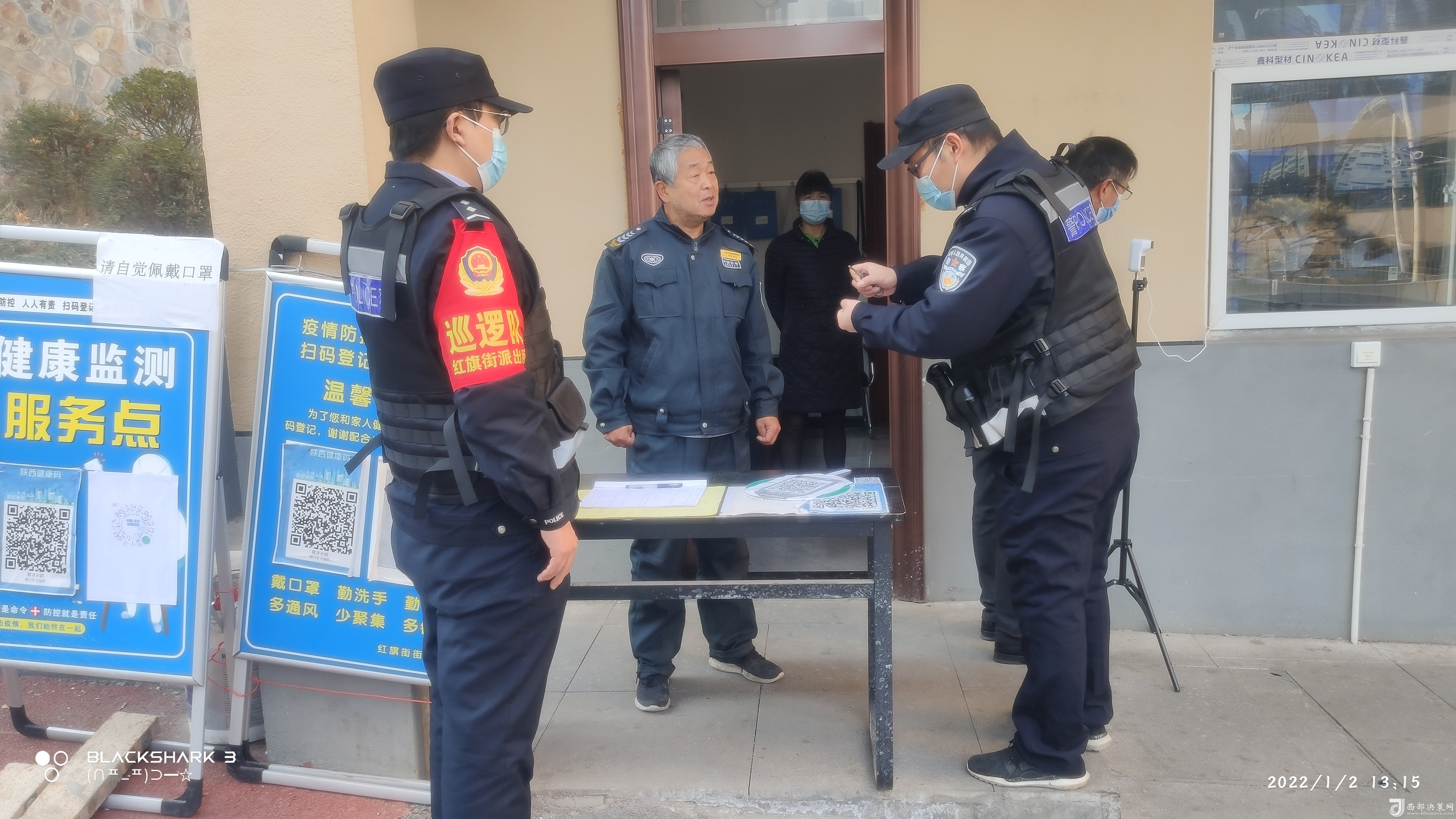 紅旗街派出所民警在小區(qū)疫情防控點進行指導工作