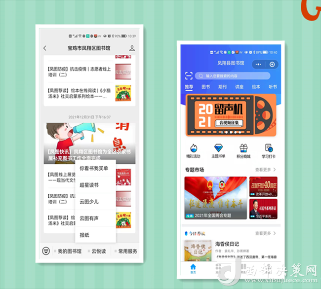 閉館不閉網(wǎng),線上服務(wù)不打烊。自12月23日閉館以來(lái),區(qū)圖書館整合各類數(shù)字資源,免費(fèi)提供豐富的線上服務(wù),滿足不同年齡群體讀者的閱讀需求,更新“超星閱讀”APP,電子書、數(shù)字期刊、講座、繪本、聽書等海量資源為讀者提供高質(zhì)量的閱讀福利。利用“陜西數(shù)字文化網(wǎng)”“鳳翔區(qū)圖書館官方網(wǎng)站”“鳳翔區(qū)圖書館”公眾微信號(hào),線上開設(shè)【鳳圖戰(zhàn)疫】【鳳圖薦讀】【紅色故事繪】【館員姐姐講故事】【館員有聲薦讀】【鳳圖文苑】等閱讀服務(wù)專欄,提供疫情防控知識(shí)、繪本閱讀、親子故事講讀、線上展覽等,讀者通過(guò)關(guān)注“寶雞市鳳翔區(qū)圖書館”公眾號(hào)、網(wǎng)站享受24小時(shí)線上服務(wù),通過(guò)鳳翔區(qū)圖書館總分館群,將這些優(yōu)質(zhì)數(shù)字資源向基層分館輸送,讓廣大讀者暢享“云端閱讀”。