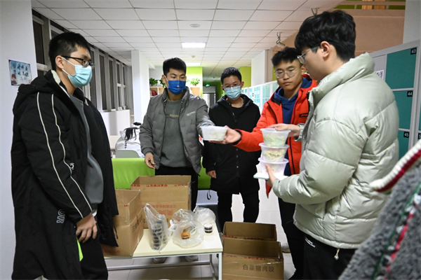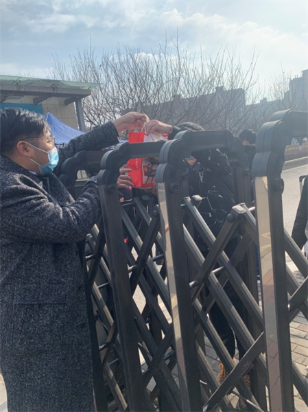南校區(qū)家屬區(qū)開始封閉管理,一些租住在家屬院的已退宿延期畢業(yè)學(xué)生由于不會(huì)做飯,就餐成了難題,于是,輔導(dǎo)員楊笑宇化身“外賣小哥”,前往食堂、超市、面包店采購一大包食品和生活用品,透過家屬區(qū)的大門交到學(xué)生手中,解決了學(xué)生的溫飽難題。
