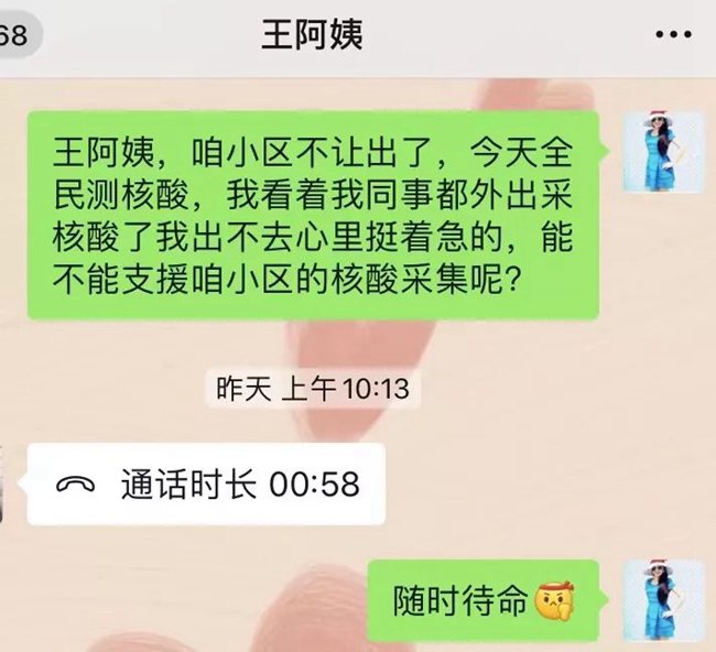 看到同事們紛紛出征,何娟心急如焚。得知所住社區(qū)要開展全員測(cè)核酸的任務(wù)時(shí),何娟立即和社區(qū)溝通,請(qǐng)纓作為志愿者參加小區(qū)居民核酸采集工作。