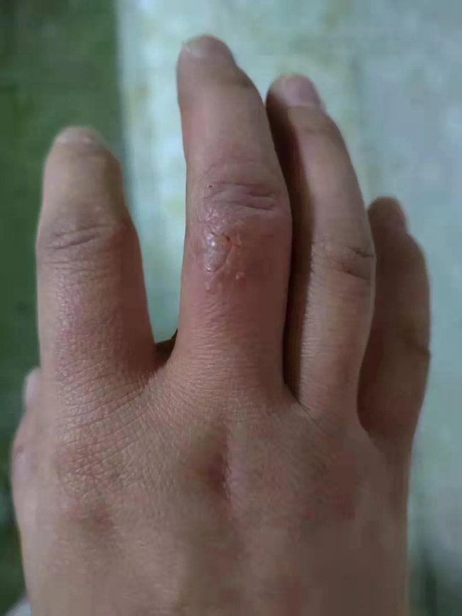 護(hù)士長(zhǎng)楊敏的手被凍出了瘡。西安大興醫(yī)院供圖