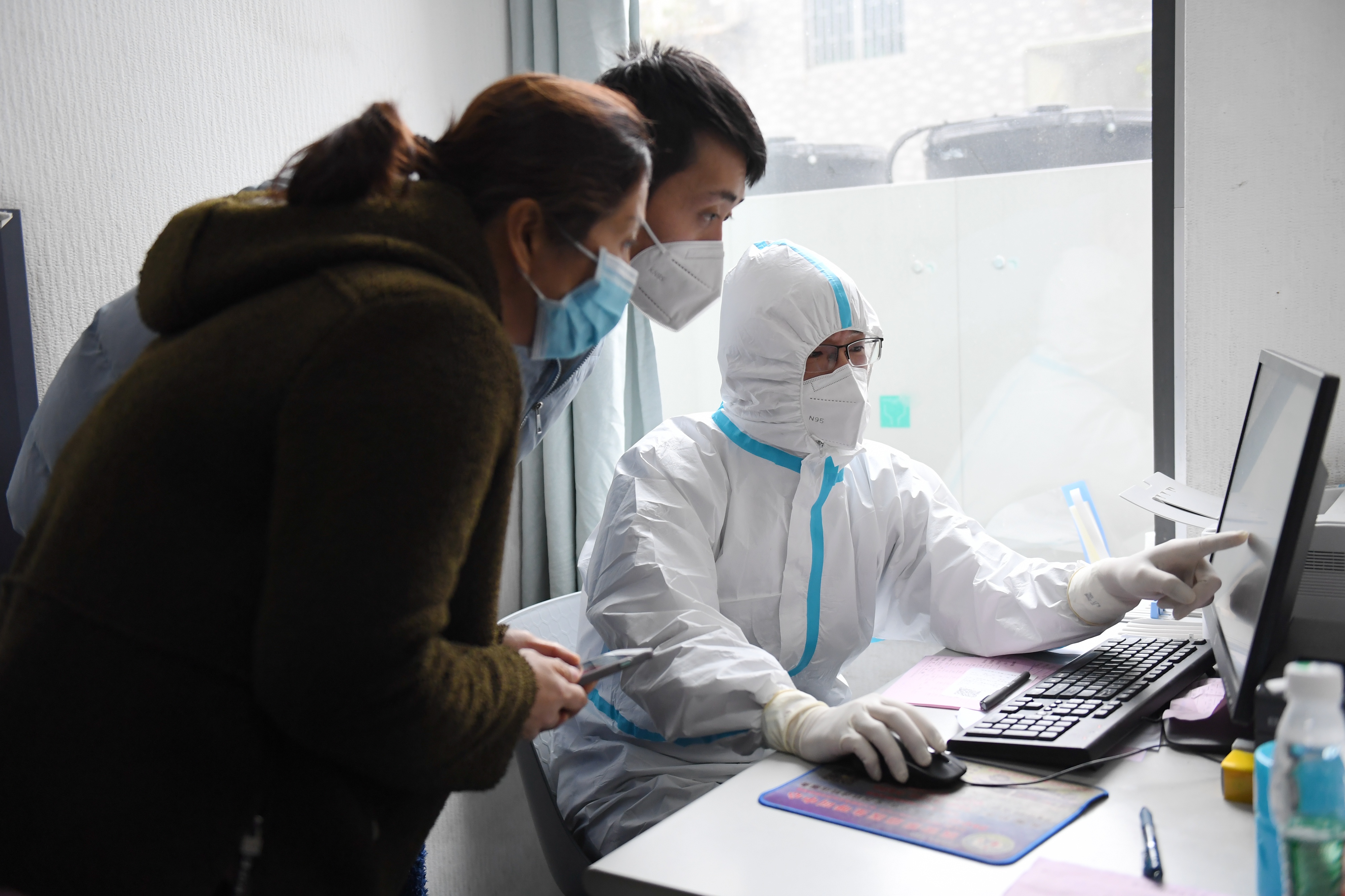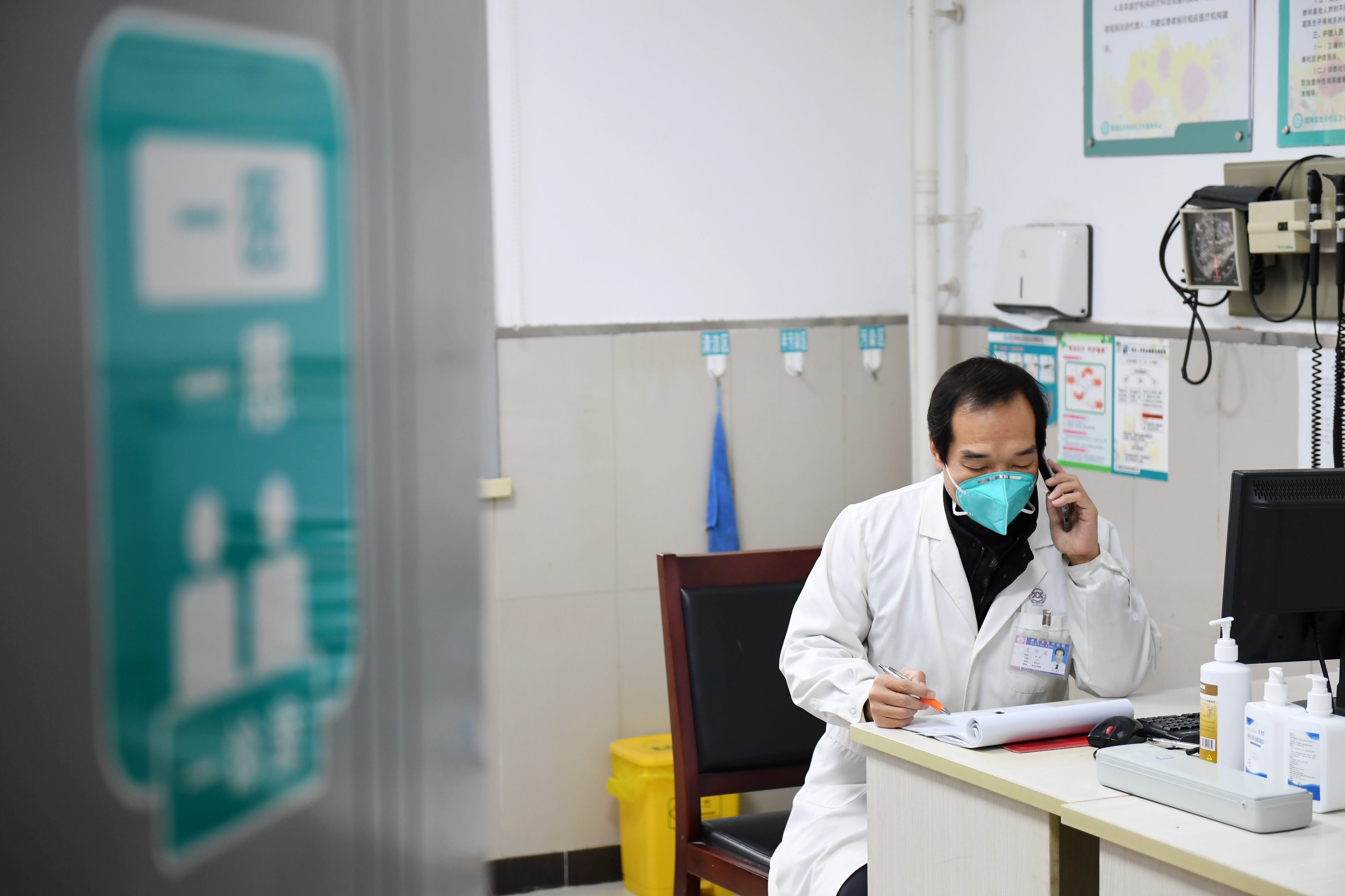 1月8日,在西安市蓮湖區(qū)北關(guān)社區(qū)衛(wèi)生服務(wù)中心,醫(yī)生郭永通過電話接診患者。新華社記者 李一博 攝