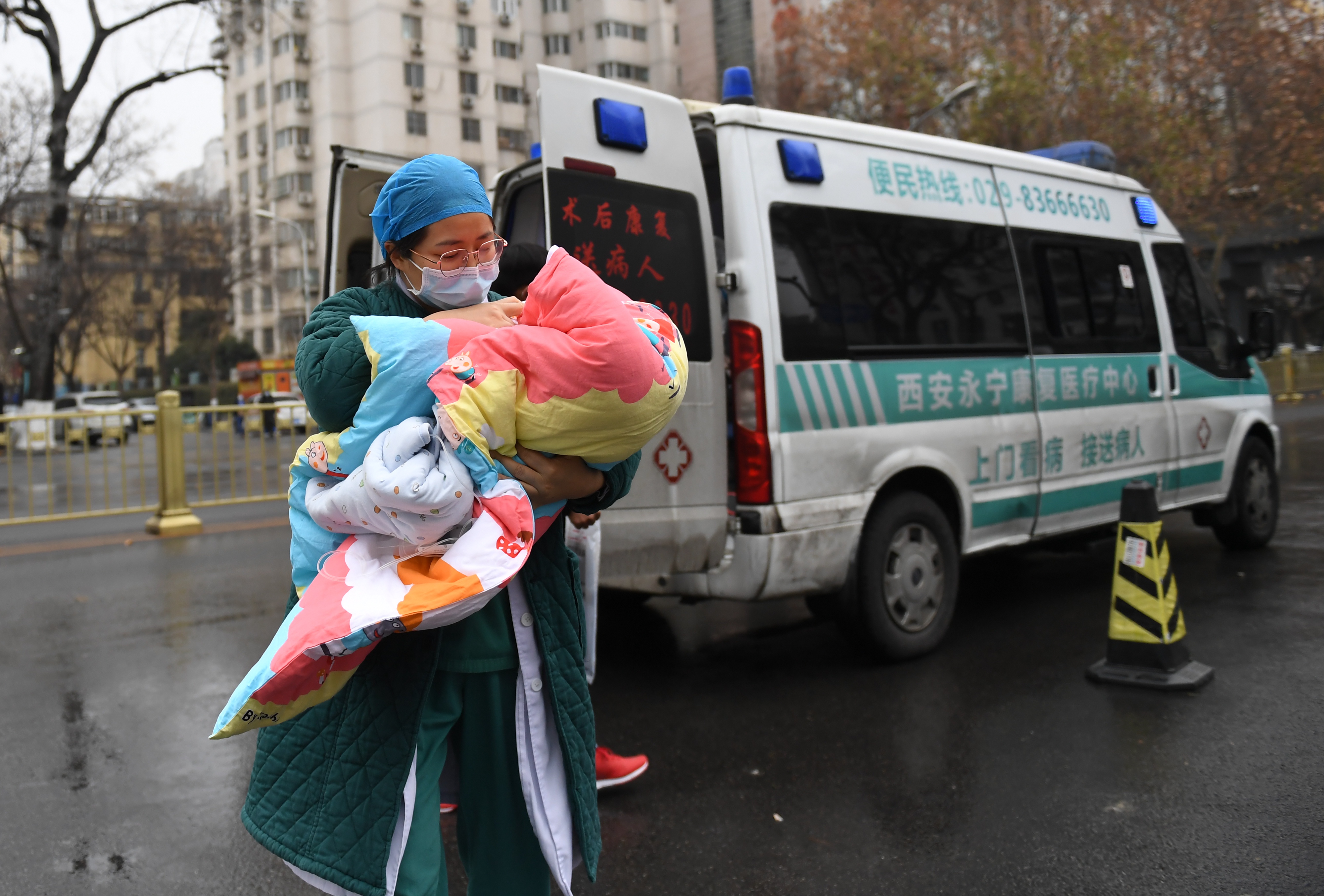 1月8日,在西安交通大學(xué)第二附屬醫(yī)院,兒科醫(yī)生王莉接診一名被救護車轉(zhuǎn)運就醫(yī)的嬰兒。