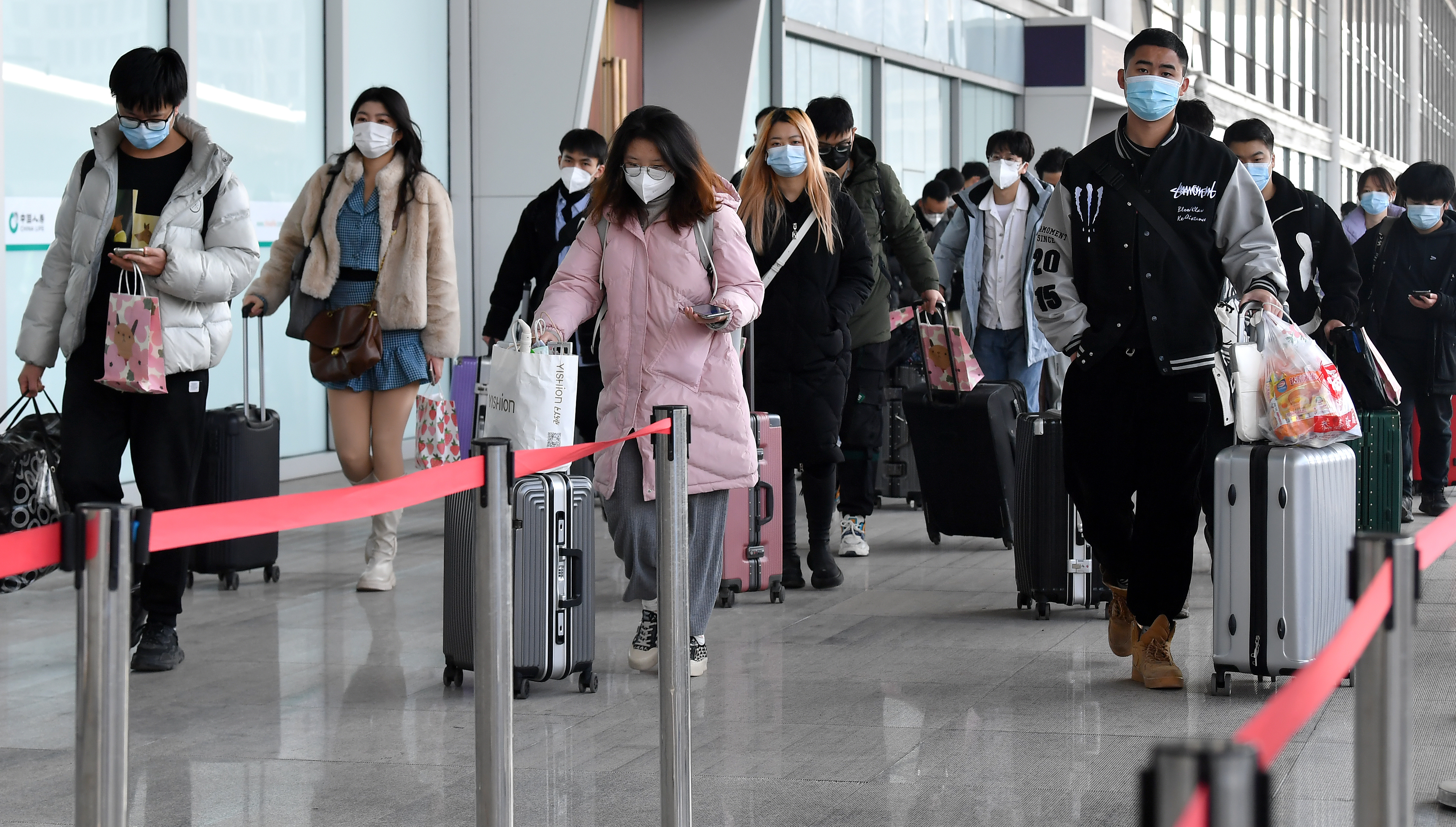 1月16日,西安北客站,離校返鄉(xiāng)的西安高校學(xué)生進(jìn)站時(shí)出示核酸檢測報(bào)告。新華社記者 劉瀟 攝