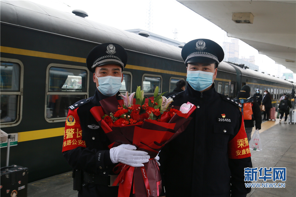 今年59歲的老汪是安康鐵路公安處乘警支隊(duì)的老乘警。1988年參加公安工作的他在紫陽站派出所工作了13年。2001年調(diào)入乘警支隊(duì),在乘警崗位上一待就是21年。而今年的春運(yùn)對老汪來說有著特殊的意義,春運(yùn)首日也是老汪最后一趟值乘。在安康站始發(fā)前,支隊(duì)政委呂昭琦專程送來鮮花表示對老汪多年工作的感謝。已堅(jiān)守34個(gè)春運(yùn),用老汪的話來說,自己沒有過轟轟烈烈的大事,只是做好本職的工作,從沒有對不起過頭頂?shù)木铡?/p>