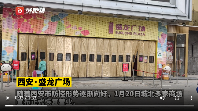 華商網(wǎng)訊(記者 何媛 鐘夢哲)隨著西安本輪疫情形勢逐漸好轉(zhuǎn),西安市逐步降級社會面管控措施。伴隨著復(fù)工復(fù)產(chǎn)的有序推進(jìn),商貿(mào)業(yè)也做出了快速響應(yīng)——1月20日,盛龍廣場、龍首印象城、大明宮萬達(dá)、漢神購物廣場等商業(yè)綜合體已恢復(fù)營業(yè)。