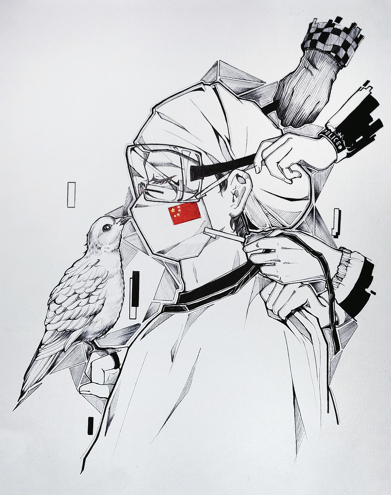 一幅幅插圖,展示、宣傳了疫情防控政策,同時也謳歌贊美了英勇戰(zhàn)斗在防疫一線的醫(yī)務工作者、各級志愿者和工作人員,為抗疫工作凝聚團結一心的精神防線。