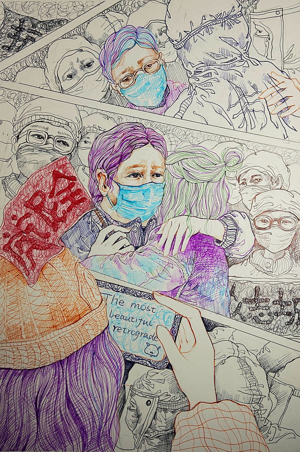 2021年12月,新冠肺炎疫情在西安突然暴發(fā),面對突如其來的疫情和嚴峻復雜的防控形勢,在加強落實疫情防控、保障師生健康的同時,西安工程大學服裝與藝術設計學院積極應對,組織全院師生有序、規(guī)范開啟2021年秋季期末課程結課的線上教學。任課教師及時調(diào)整結課作業(yè)主題,充分利用視覺傳達設計專業(yè)特點,組織同學們嚴謹認真、激情飽滿地用畫筆以藝抗疫,致敬最美逆行者!