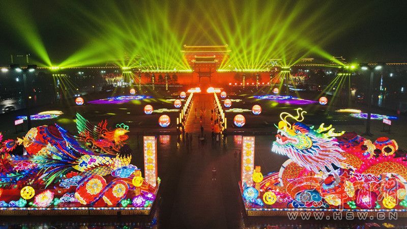 西安城墻永寧門南廣場上,“龍飛鳳舞耀長安”和“祥和新春”燈組交織出一幅逐夢山河萬里的盛世畫卷,共祝祖國繁榮昌盛,續(xù)寫新春華章。
