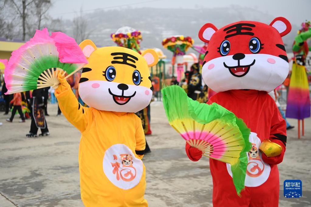 虎年春節(jié)將至,甘肅省臨夏回族自治州和政縣陳家集鎮(zhèn)陳家集村村民們扭起秧歌,迎接春節(jié)的到來(lái)。