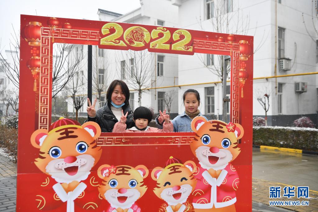 1月27日,西安市鄠邑區(qū)幸福佳苑社區(qū)居民在社區(qū)廣場(chǎng)合影。新華社記者 張博文 攝