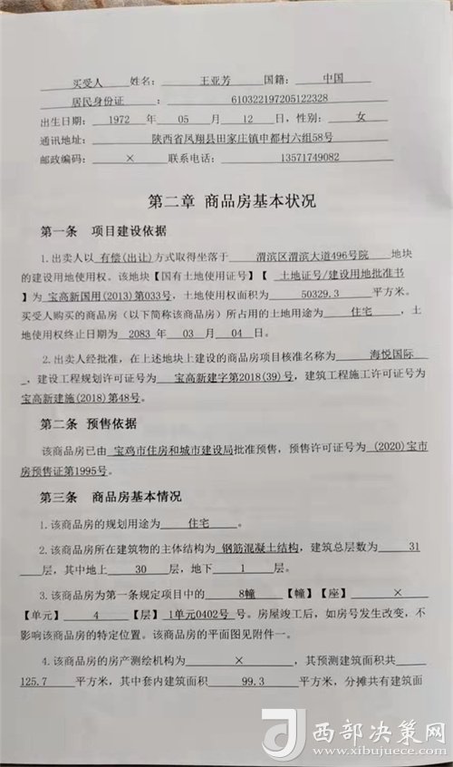 決策熱線|寶雞市民王女士(化名):我于2021年3月在寶雞市高新區(qū)渭濱大道臻和天下看了一套住宅樓,覺得地段位置也好。經過和家人一起商議,與售樓人員確定了8幢1單元4層東戶南北通透的房子,于2021年3月18日簽訂書面商品房買賣合同,于2021年4月15日簽訂按揭貸款合同給開發(fā)商交清了房款,前期共花費七十余萬。
