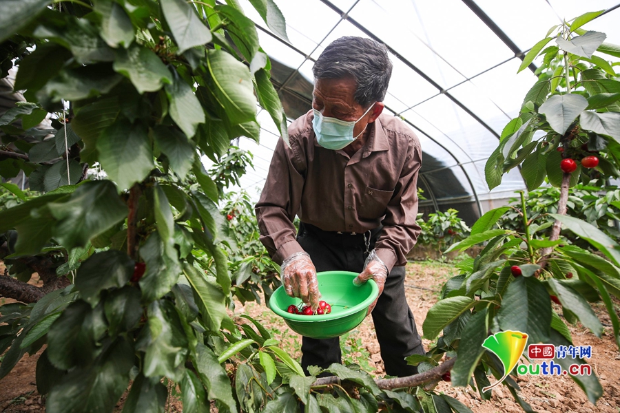 中國青年網(wǎng)西安4月27日電(記者 張亞云)3月開始,金峪鎮(zhèn)溝北村櫻桃溫室大棚外已經(jīng)開始采摘分揀、裝盒售賣,金峪鎮(zhèn)溝北村黨支部書記李存才說,溝北村的櫻桃購銷兩旺,完全不愁賣。顆顆紅櫻桃,成為致富新希望。
