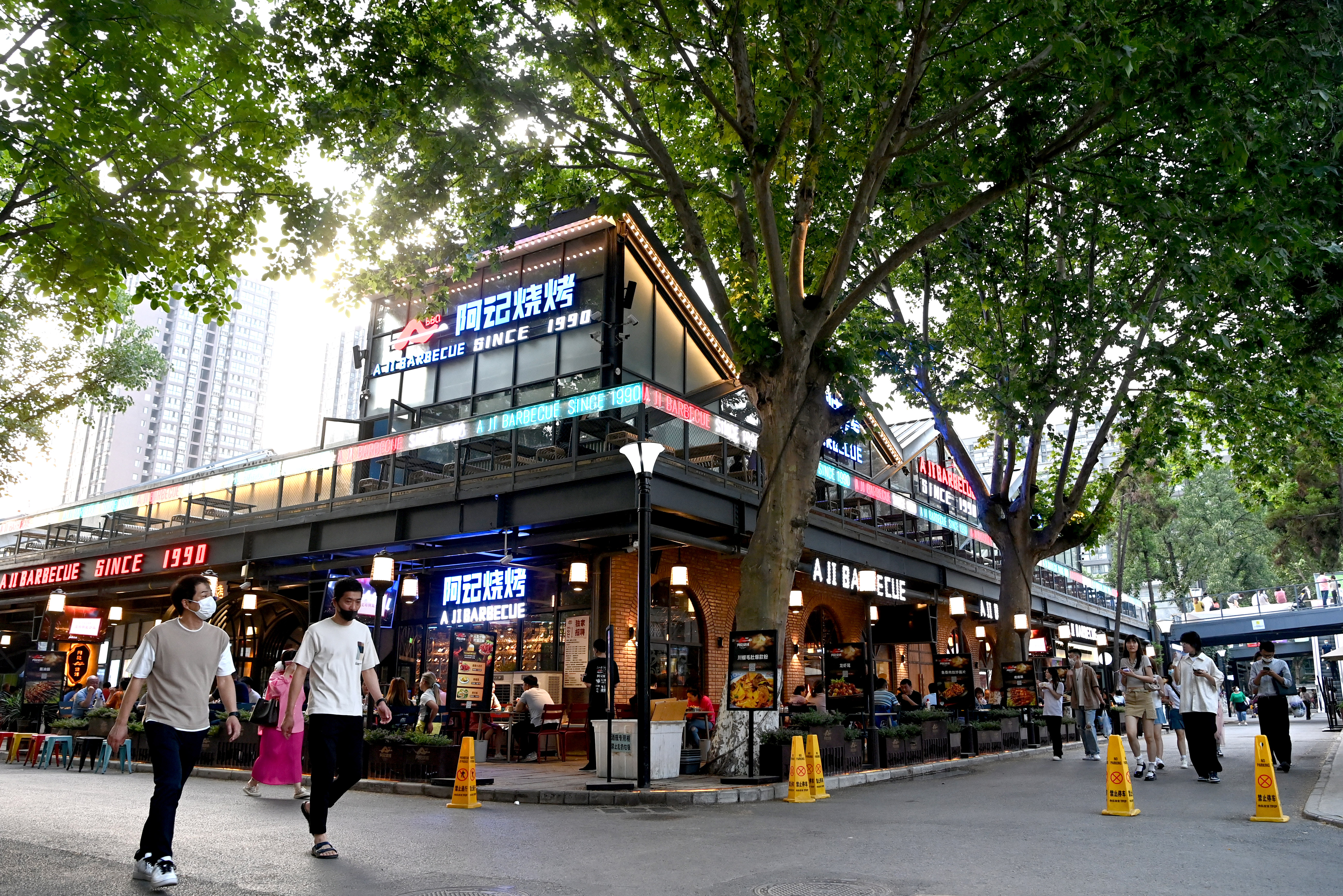 市民在西安際華3511文創(chuàng)科技園就餐(5月20日攝)。 新華社記者 劉瀟 攝