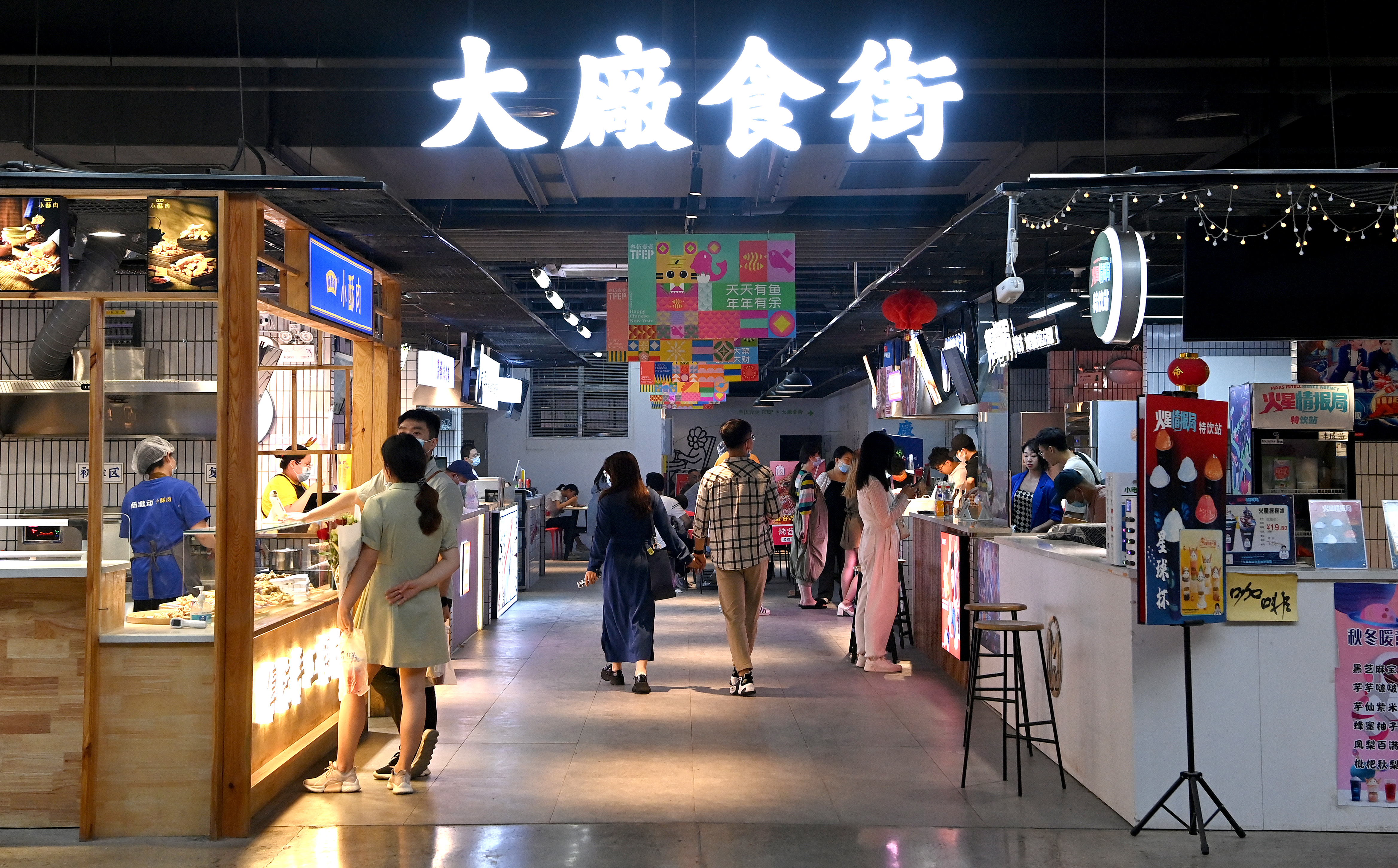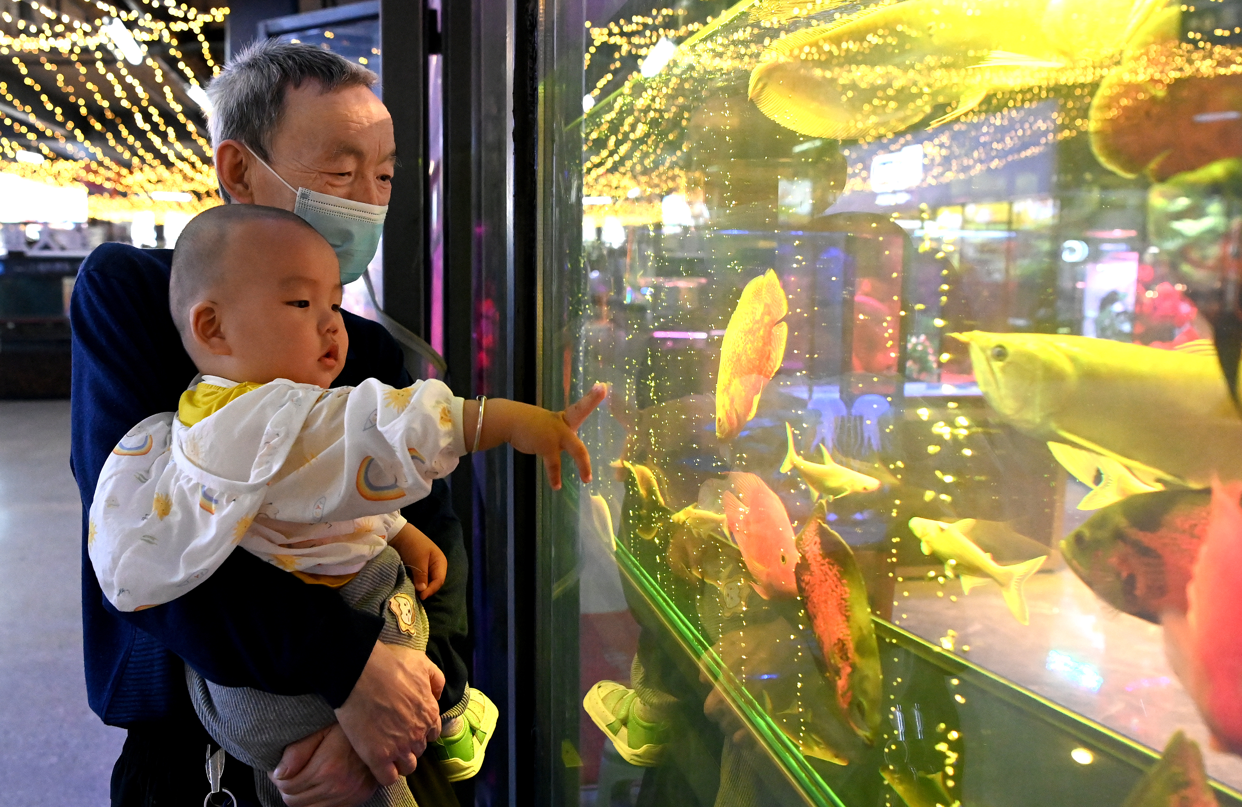 市民在西安際華3511文創(chuàng)科技園內的魚市觀賞游玩(5月20日攝)。