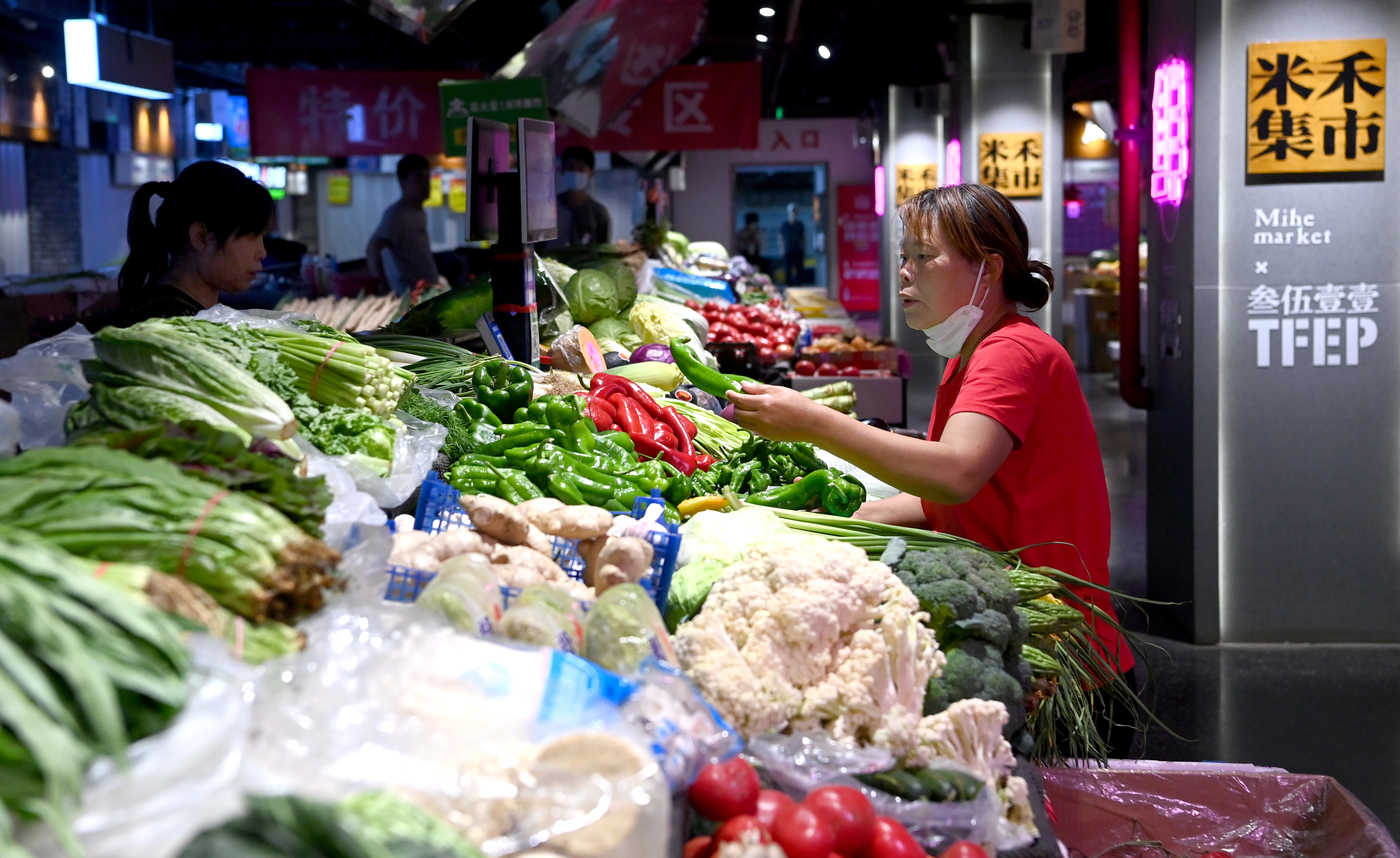 市民在西安際華3511文創(chuàng)科技園內的集市購物(5月20日攝)。 新華社記者 劉瀟 攝
