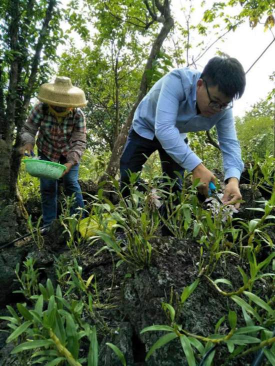 吳清偉帶領員工修剪火山石斛。受訪者供圖
