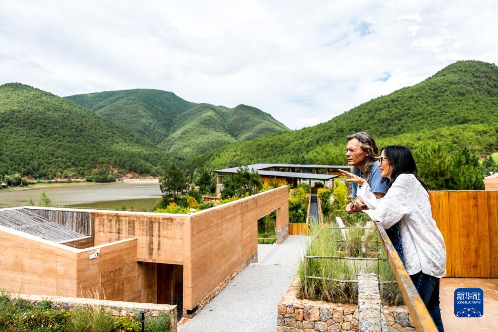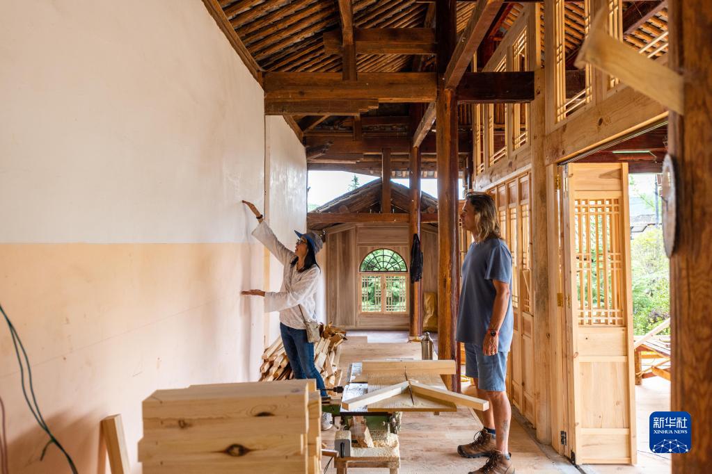 8月31日,林登和妻子瑾妮在沙溪鎮(zhèn)石龍村討論鄉(xiāng)村圖書(shū)館的設(shè)計(jì)。新華社記者 曹夢(mèng)瑤 攝