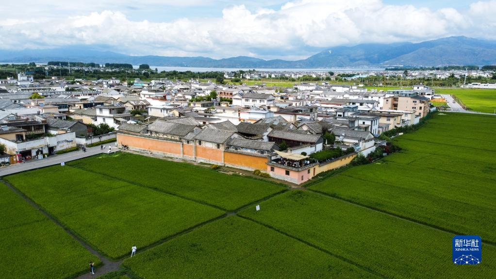 這是8月27日拍攝的云南省喜洲古鎮(zhèn),近處為喜林苑(無(wú)人機(jī)照片)。新華社記者 曹夢(mèng)瑤 攝