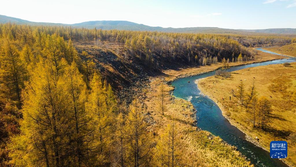 這是9月21日拍攝的阿爾山國(guó)家森林公園中不凍河的自然風(fēng)光(無人機(jī)照片)。新華社記者 彭源 攝