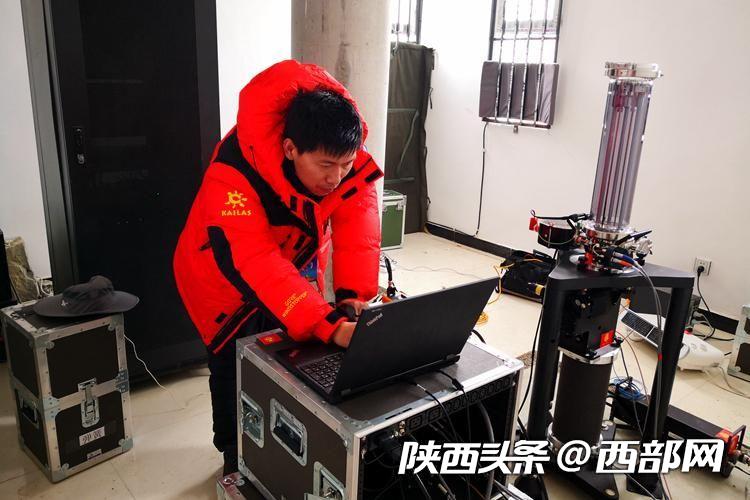 趙丕正在操作測量設備。