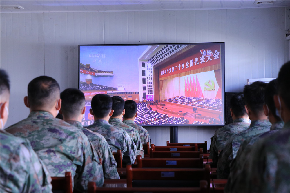 南部戰(zhàn)區(qū)海軍某守備部隊(duì)官兵集合在會議室,認(rèn)真收看黨的二十大開幕并交流體會。在祖國西陲阿爾泰山腹地,新疆軍區(qū)紅山嘴邊防連官兵收看黨的二十大開幕后,立即展開討論。官兵們說:“身后是祖國和人民,我們一定要忠誠履行衛(wèi)國戍邊職責(zé),深入推進(jìn)實(shí)戰(zhàn)化軍事訓(xùn)練,以過硬軍事能力筑牢邊疆安全穩(wěn)定屏障,努力為黨和人民再立新功。”