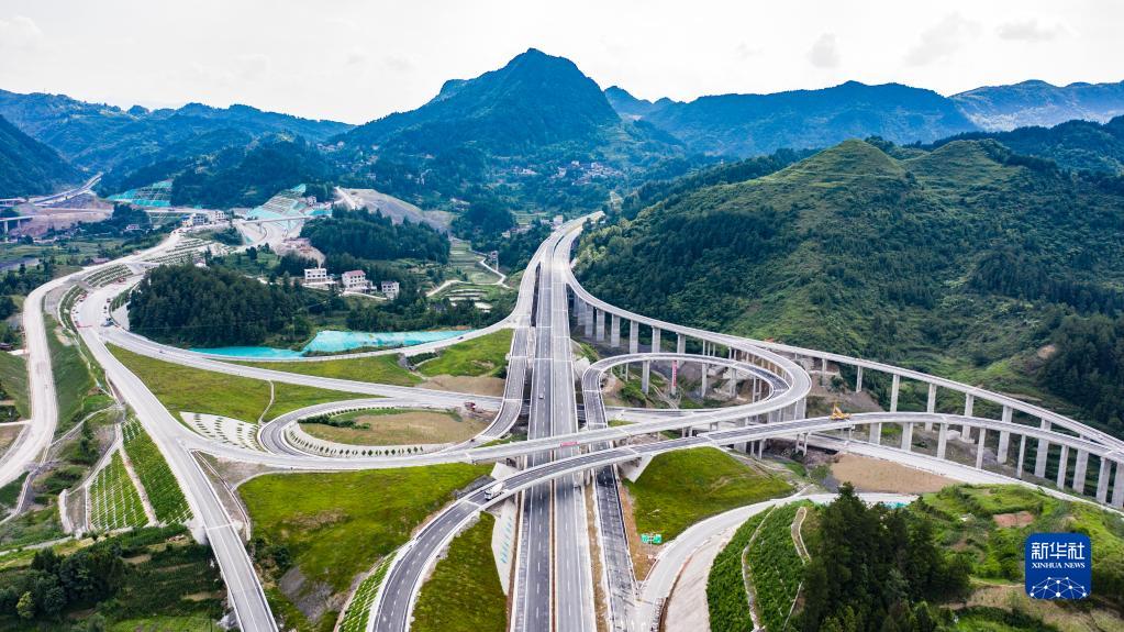 這是貴州石阡至玉屏高速公路花橋互通(2021年6月17日攝,無人機照片)。新華社記者 陶亮 攝