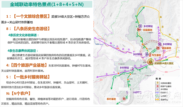 做活三產(chǎn),促進(jìn)三產(chǎn)融合。采用鎮(zhèn)區(qū)—驛道—基地—驛站—農(nóng)戶體系模式,打造1個(gè)綜合景區(qū),8條鄉(xiāng)村驛道,4個(gè)旅游產(chǎn)業(yè)基地,5個(gè)鄉(xiāng)村驛站,N個(gè)特色農(nóng)戶。即通過諸葛亮讀書臺(tái)、老縣衙恢復(fù)、諸葛文化旅游度假景區(qū)、綜合文化會(huì)展中心建設(shè)項(xiàng)目,豐富景區(qū)旅游產(chǎn)品;依托古道,游步道打造8條鄉(xiāng)村驛道;打造武侯鎮(zhèn)朱家河村民宿基地、武侯鎮(zhèn)鐘樓村寫生基地、武侯鎮(zhèn)關(guān)山梁村體旅基地、武侯鎮(zhèn)廟灣茶葉基地;依托長安畫派領(lǐng)軍人物方濟(jì)眾名人效應(yīng),打造鐘樓畫鄉(xiāng)品牌;在中心村結(jié)合村莊公共空間分布情況打造5處鄉(xiāng)村驛站,提供休憩、停車、餐飲等旅游配套服務(wù)。(通訊員:張彬)