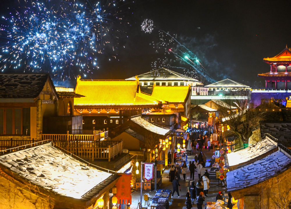 1月14日,游客在金延安文化旅游產業(yè)園內游覽。新華社發(fā)