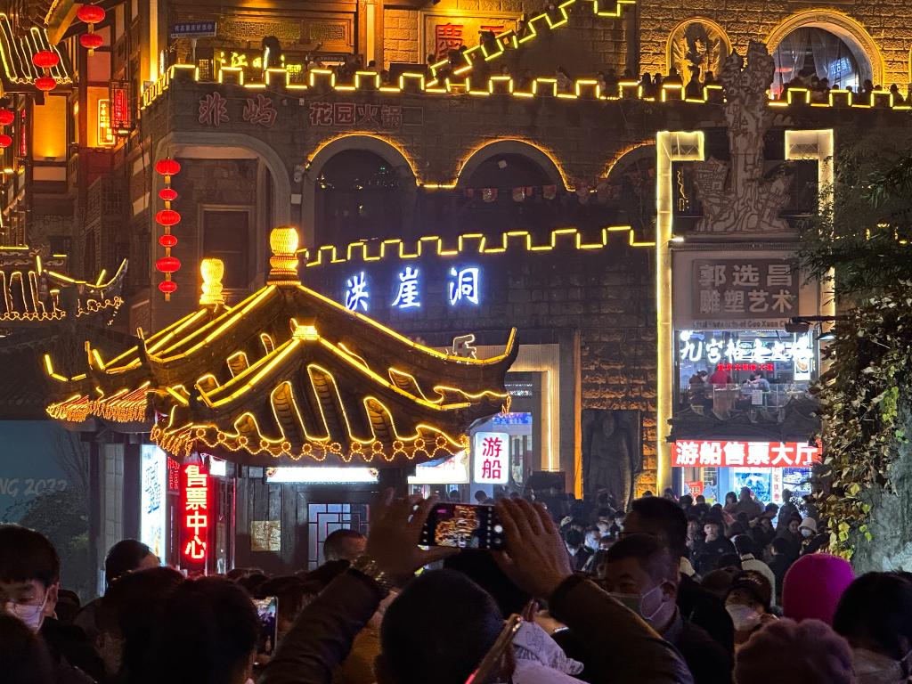 重慶洪崖洞民俗風貌區(qū)重現歡鬧,“店鋪營業(yè)額同比增長20%。”一家火鍋店店主陳大江說;重慶老街山城巷,紅燈籠照亮青石與黛瓦,人們在打卡地排隊拍照。“這里古色古香,又融入現代時尚元素,很有氛圍!”游客秦藝說。