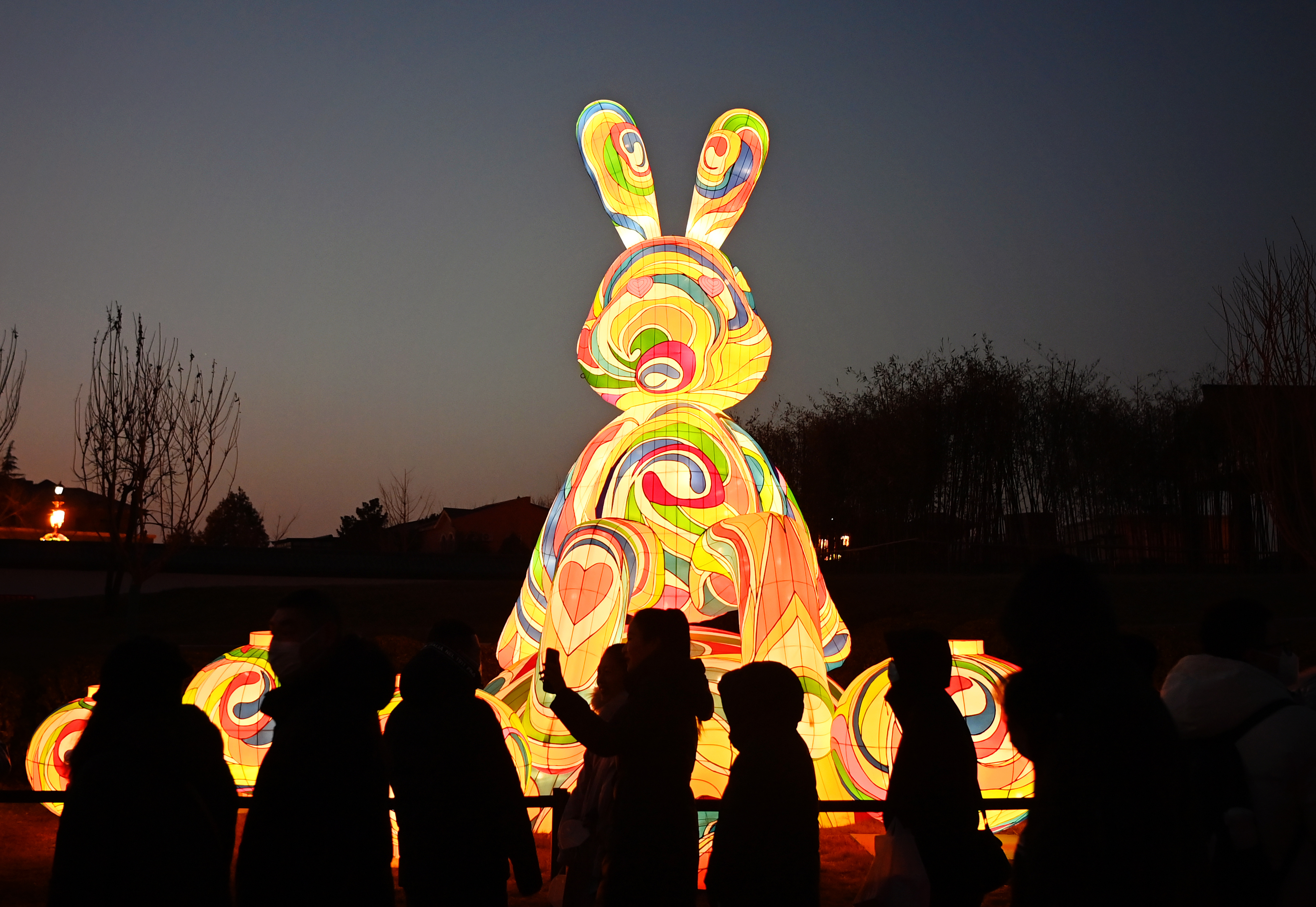 1月24日,游客在西安大唐芙蓉園內(nèi)的花燈旁拍照。新華社記者 劉瀟 攝