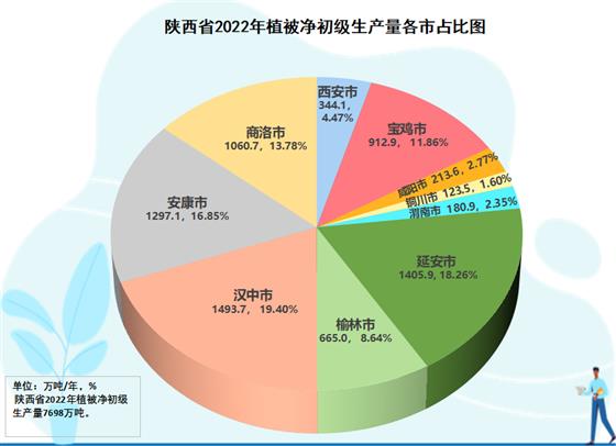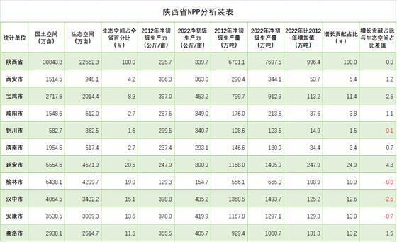 全省元生產(chǎn)力區(qū)域分析結(jié)果表明,在三大區(qū)域生態(tài)蛋糕越來越大的同時(shí),生態(tài)蛋糕的空間布局上與結(jié)構(gòu)發(fā)生變化,呈現(xiàn)黃河流域綠色崛起大趨勢。陜北榆林、延安兩市,生態(tài)空間8971.6萬畝,占全省的39.6%;關(guān)中西安、寶雞、咸陽、渭南、銅川五市生態(tài)空間4554.5萬畝,占全省的29.2%;陜南漢中、安康、商洛三市生態(tài)空間9136.2萬畝,占全省的40.2%。2022年,陜北兩市提供了2070.9萬噸植被凈初級生產(chǎn)量,占全省的26.9%,比2012年的1714.1萬噸增加313.8萬噸,增長18.3%,在全省份額上升了1.3個(gè)百分點(diǎn);關(guān)中五市提供了1775.1萬噸的植被凈初級生產(chǎn)量,占全省的23.1%,比2012年的1524.3萬噸250.8萬噸,增長16.4%,在全省份額上升了0.3個(gè)百分點(diǎn);陜南三市提供了3851.5萬噸植被凈初級生產(chǎn)量,占全省的50.0%,比2012年的3462.7萬噸增加388.8萬噸,增長11.2%,在全省份額下降了1.6個(gè)百分點(diǎn)。2012-2022年全省新增生態(tài)蛋糕996.4萬噸,陜北兩市貢獻(xiàn)31.5%,關(guān)中五市貢獻(xiàn)29.5%,陜南三市貢獻(xiàn)39.0%。陜北、關(guān)中提供的生態(tài)蛋糕占全省的份額已由2012年的48.4%提高到2022年的50.0%。