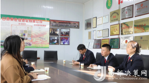西部決策網(wǎng)訊(記者帥華鋒)  近日,甘肅省隴南市兩當縣法院黨組書記、院長鄧剛帶領黨組成員、副院長余淑芳、專委董高彥一行先后到兩當興源中藥飲片有限責任公司和甘肅果老仙酒業(yè)走訪調(diào)研。