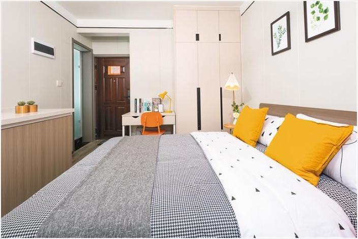 除了租金十分優(yōu)惠外,安居·樂筑(涇渭店)的房屋品質(zhì)也令人驚喜。項目外墻有一幅巨大的墻體彩繪,以明麗鮮艷的色彩和青年人逐夢筑家的主題,吸引了不少年輕住戶圍觀打卡。項目公共區(qū)域提供閱讀、游戲、觀影、健身、共享美食、會議商談等多種功能,同時在每一層設(shè)有共享廚房,租客入住后可以實現(xiàn)“做飯自由”,充分享受家的溫馨。走進安居·樂筑(涇渭店)的房間內(nèi),裝修裝飾以暖白色、橘色為主色調(diào),搭配同色系的床品、沙發(fā)、餐具、書桌等,層次感十足,同時配備洗衣機、冰箱、空調(diào)等家電,充滿生活氣息。“整棟樓都是統(tǒng)一戶型、統(tǒng)一裝修,品質(zhì)很有保障。”安居·樂筑(涇渭店)負責(zé)人介紹,申請人入住后不能對房間進行破壞結(jié)構(gòu)的改動,如拆承重墻等,但可以按自己的喜好對房間進行軟裝布置,如綠植、布藝等。無論是從視覺形象到產(chǎn)品服務(wù),安居·樂筑(涇渭店)都致力于成為新市民和青年人溫馨、精致的“北跨”之家。
