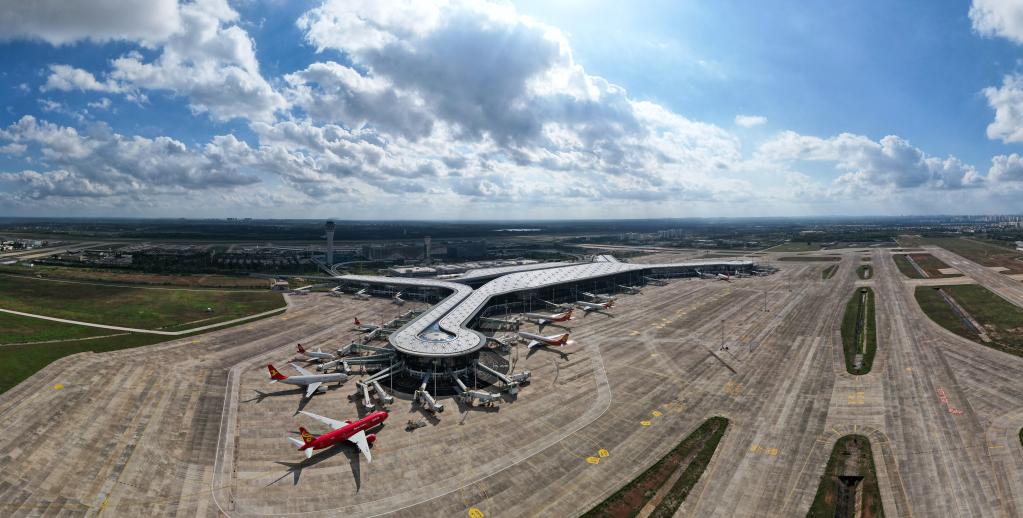 這是2021年11月20日拍攝的??诿捞m國(guó)際機(jī)場(chǎng)二期項(xiàng)目(無(wú)人機(jī)照片)。新華社記者 楊冠宇 攝
