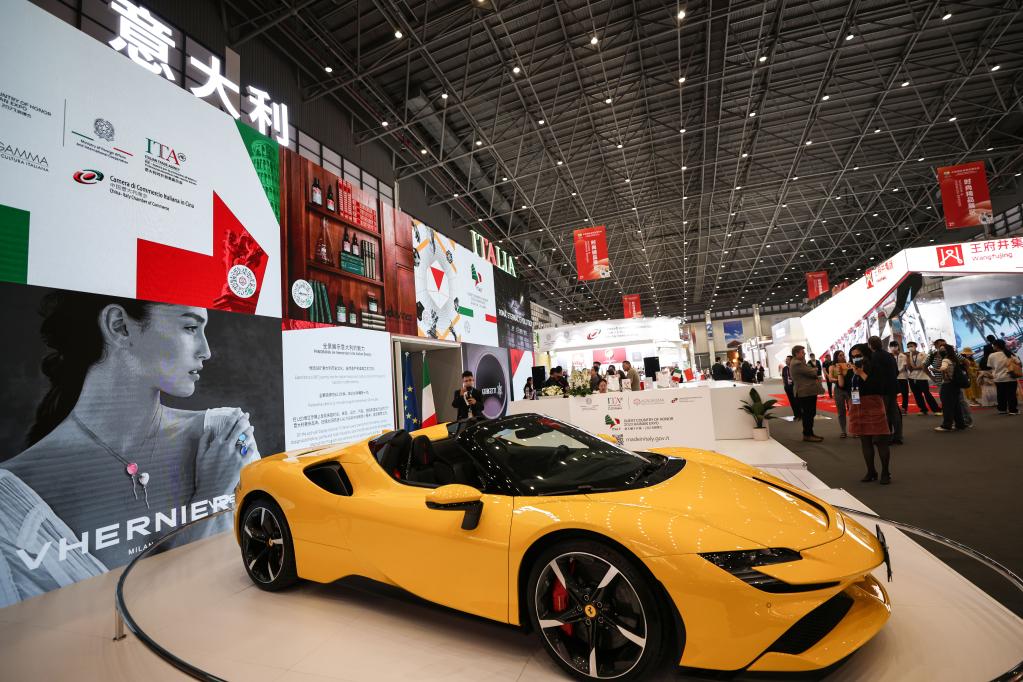 這是2023年4月10日拍攝的消博會(huì)意大利館展出的跑車(chē)。新華社記者 張麗蕓 攝