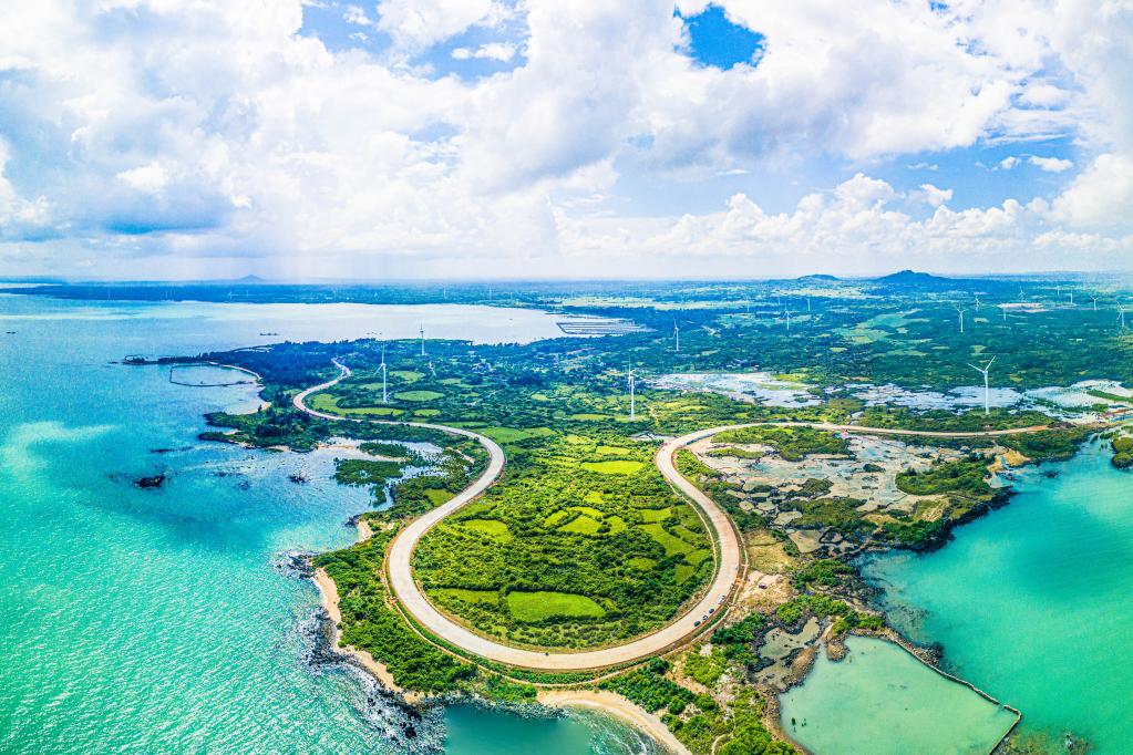 這是2022年10月6日在海南儋州峨蔓火山海岸拍攝的海南環(huán)島旅游公路(無(wú)人機(jī)照片)。新華社記者 蒲曉旭 攝