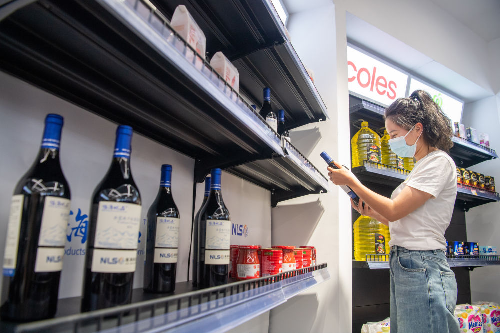 消費(fèi)者在位于重慶解放碑的“陸海新通道國(guó)際消費(fèi)中心”選購(gòu)商品(2022年5月28日攝)。新華社記者 唐奕 攝