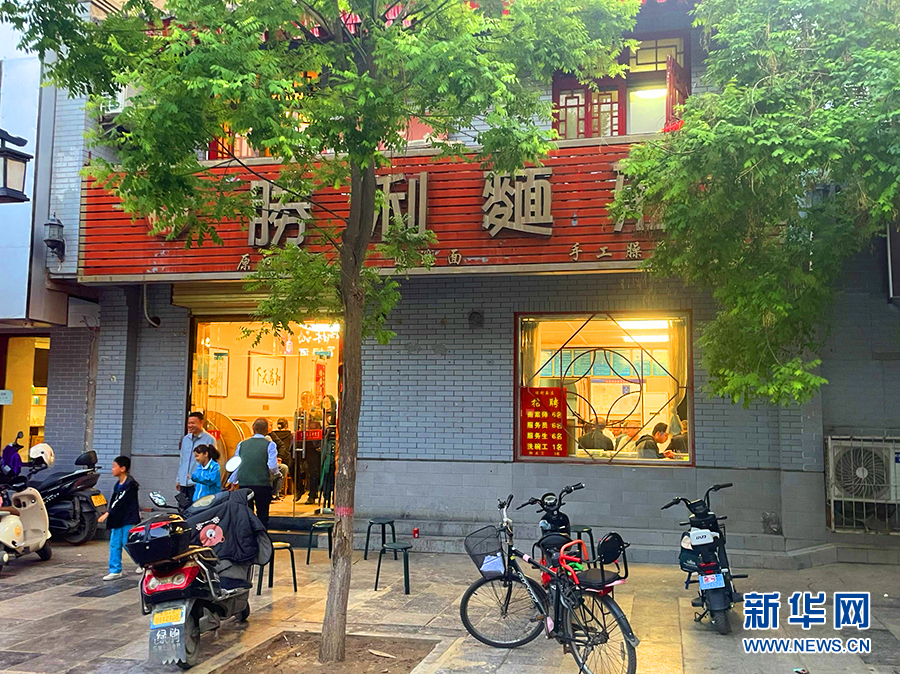 傍晚時分,勝利面莊不時還有食客出出進進。新華網(wǎng) 楊喜龍 攝