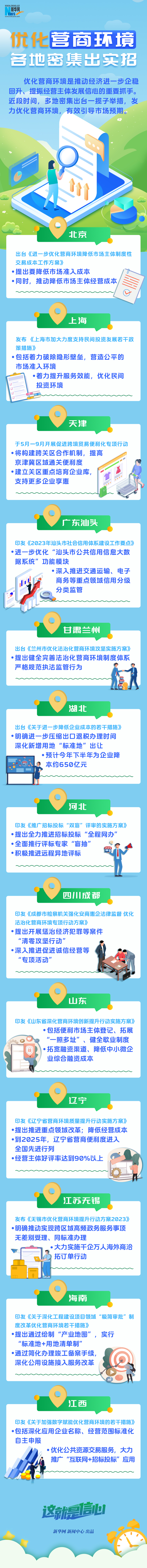 優(yōu)化營(yíng)商環(huán)境是推動(dòng)經(jīng)濟(jì)進(jìn)一步企穩(wěn)回升、提振經(jīng)營(yíng)主體發(fā)展信心的重要抓手。近段時(shí)間,多地密集出臺(tái)一攬子舉措,發(fā)力優(yōu)化營(yíng)商環(huán)境,有效引導(dǎo)市場(chǎng)預(yù)期。
