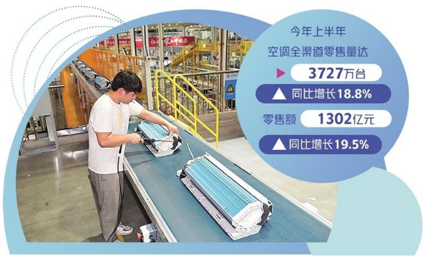 今年上半年,空調(diào)產(chǎn)品銷售量、銷售額增長(zhǎng)均在19%左右,為整個(gè)家電行業(yè)增長(zhǎng)最好的品類。