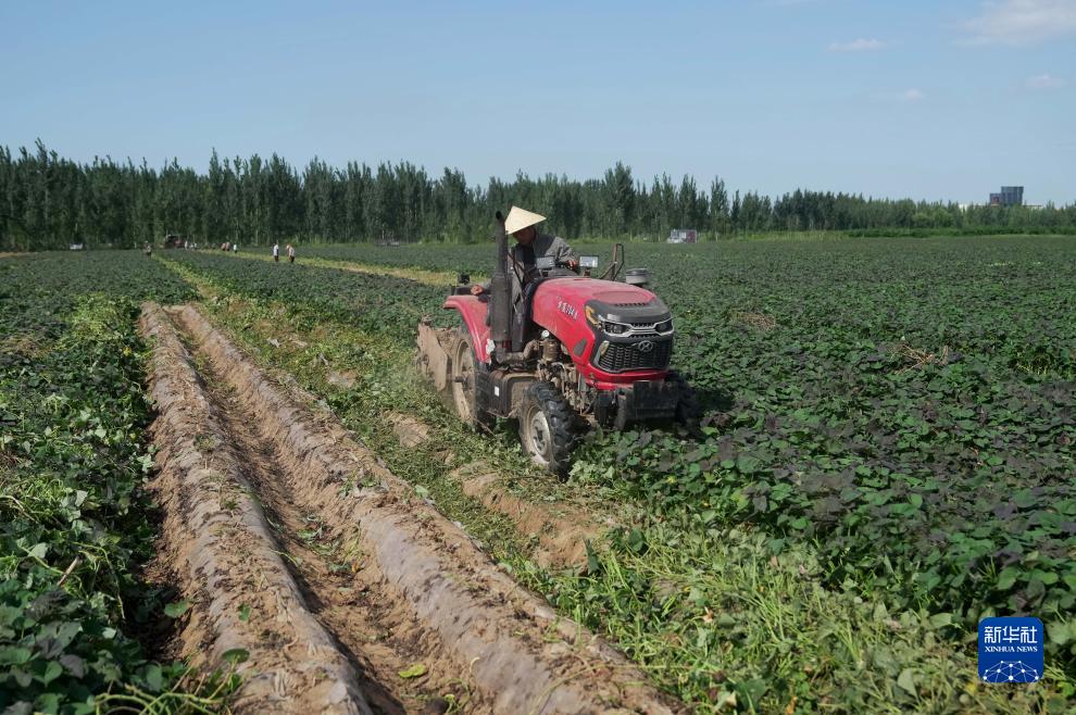 8月28日,灤州市九百戶鎮(zhèn)一家鮮食紅薯種植合作社的農(nóng)機手駕駛農(nóng)機在田間粉碎紅薯秧,準(zhǔn)備收獲紅薯。