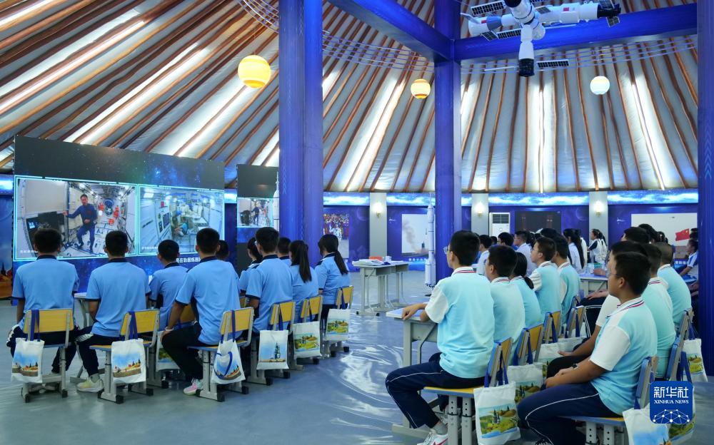 9月21日,在內(nèi)蒙古阿拉善盟額濟納旗,學生收看“天宮課堂”。新華社發(fā)(敖琪 攝)