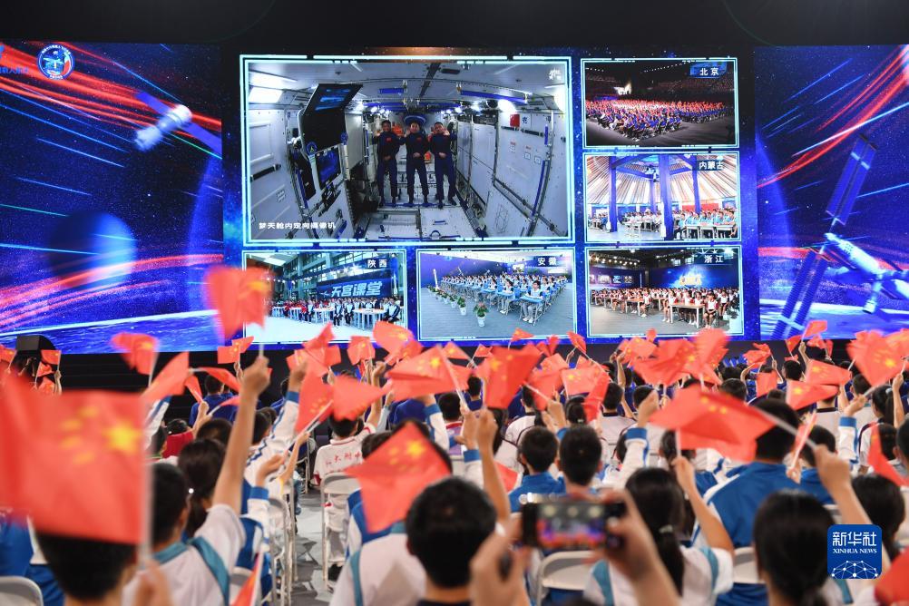 新華社北京9月21日電 9月21日下午,“天宮課堂”第四課在中國空間站開講,新晉“太空教師”景海鵬、朱楊柱、桂海潮為廣大青少年帶來一場精彩的太空科普課,這是中國航天員首次在夢天實驗艙內(nèi)進行授課。