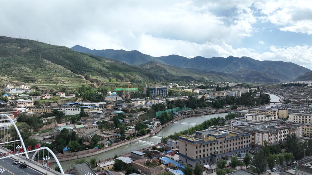 2023年8月24日,無(wú)人機(jī)拍攝的同仁市隆務(wù)河景色。(新華社記者張宏祥 攝)