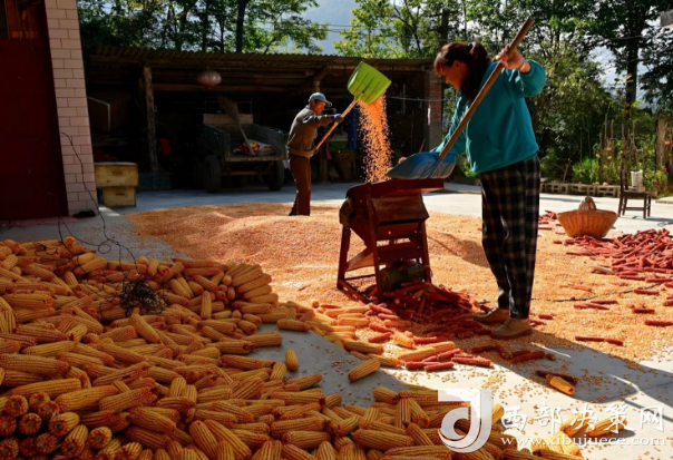 西部決策網(wǎng)訊(記者帥華鋒 通訊員 余小芹 余雅各 李三良)田疇沃野好“豐”光,遍地金黃糧滿倉。金秋時節(jié),甘肅隴南兩當(dāng)縣西坡鎮(zhèn)田間地頭的玉米喜獲豐收,村民們正利用晴好天氣采收玉米,忙得不亦樂乎,家家戶戶房前屋后堆滿了金黃的玉米,洋溢著豐收喜悅的笑臉與收獲的金黃色玉米交相輝映,勾勒出一幅動人的金秋豐收圖。