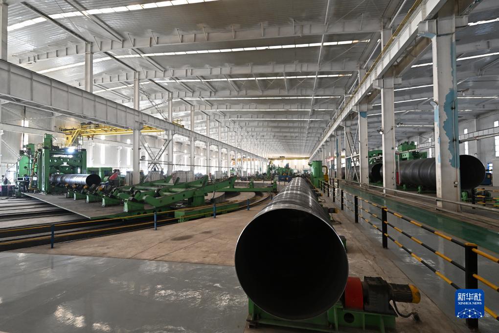 這是阿拉山口新博油氣管道制造有限責任公司的生產車間(11月4日攝)。該公司主營高端焊管的生產、保溫、防腐等業(yè)務。新華社記者 李鑫 攝